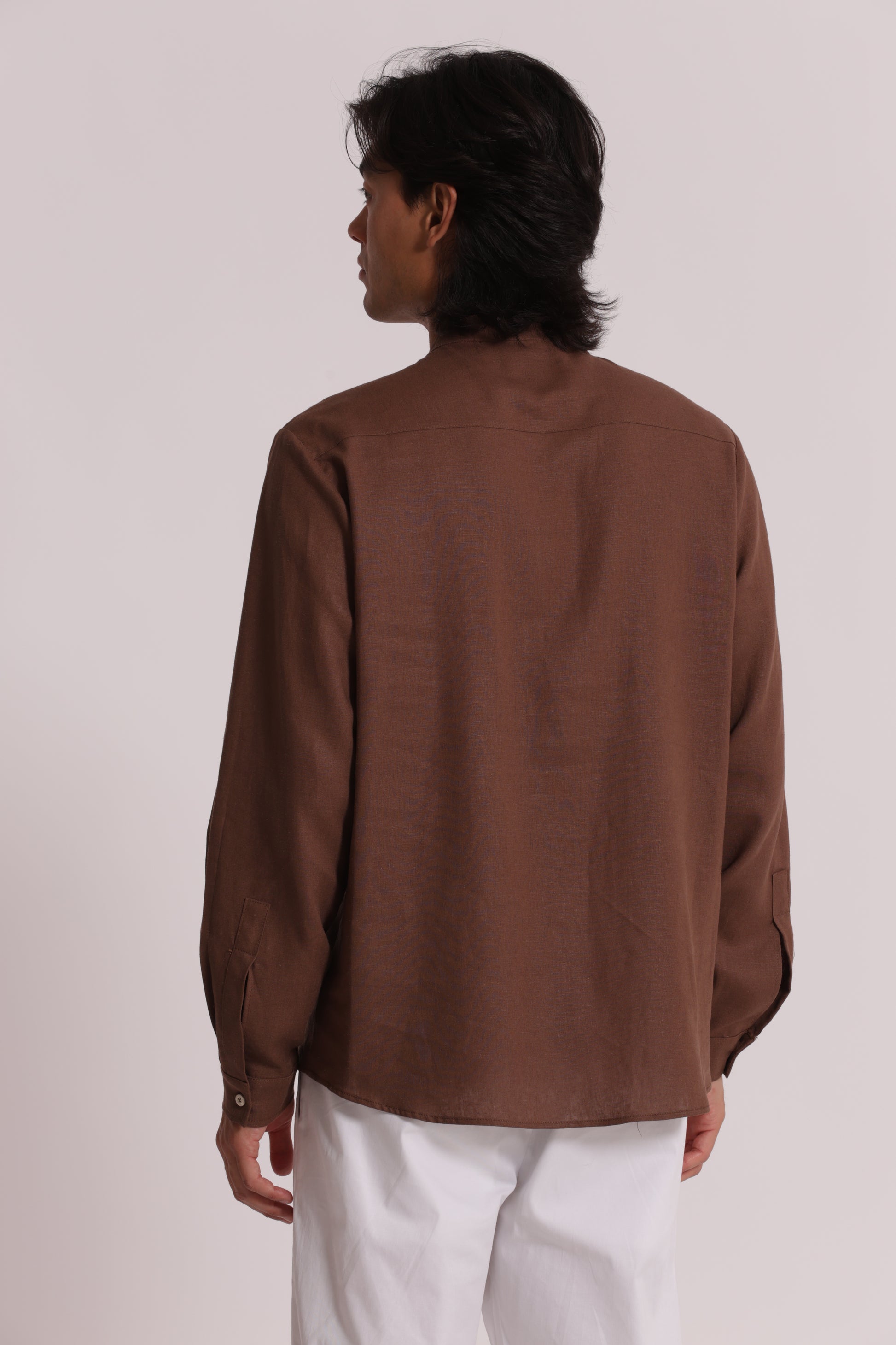 Camicia in lino con collo alla coreana.