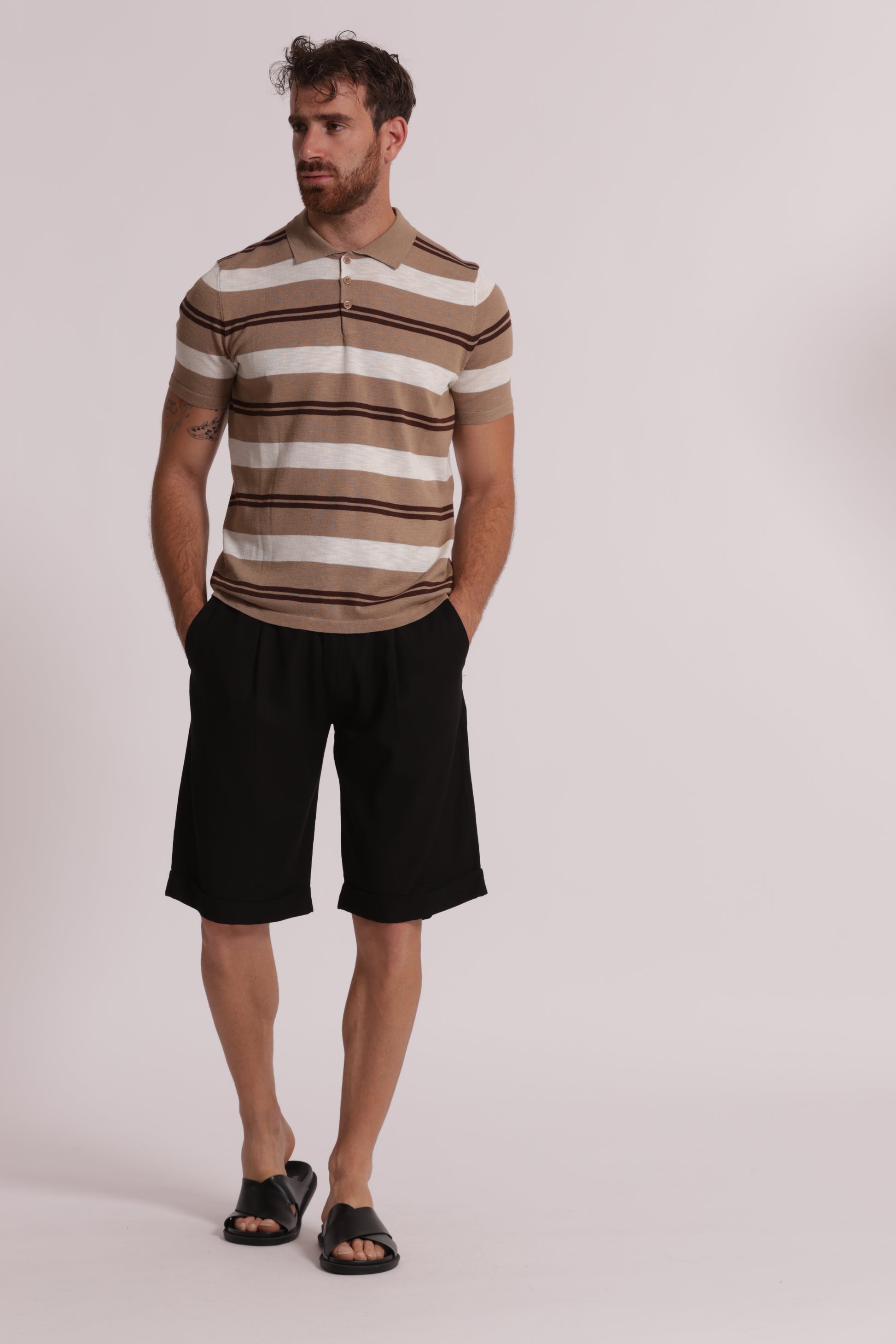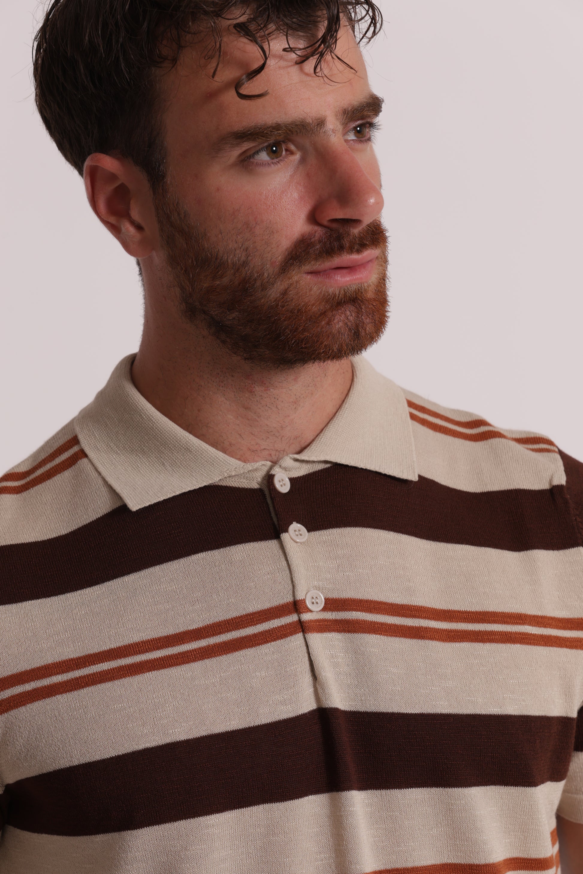 Maglia polo leggera a righe in viscosa.